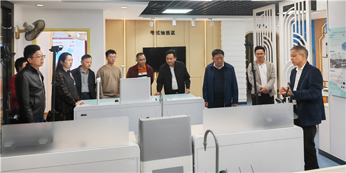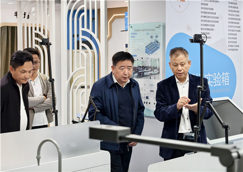 在董事長陳登貴的陪同下,調研組一行走進廣視通創新教育裝備體驗中心,參觀了創新智慧實驗室、中學AI教考實驗室、智慧書法教室、數字地理室等展廳,近距離感受各場景下數字化教育裝備的創新應用與實踐成果,詳細了解廣視通的發展歷程、經營狀況、業務拓展等方面,對公司的經營理念及產品給予了充分肯定,并勉勵企業要持續創新,完善人才培養機制,為中小企業的數字化轉型發展賦能。