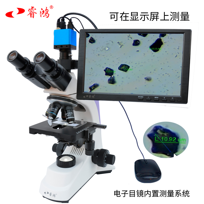 產品詳細介紹品牌:睿鴻 型號:BM-500T 觀察頭:膠鏈式三目(雙目+電子接口),雙目30度傾斜 目鏡:WF10X廣角目鏡、H16X惠根斯目鏡,各一對,電子目鏡、顯示屏(選配) 雙目瞳距:55-75mm 物鏡轉換器:四孔外傾 物鏡:195消色差物鏡:4倍、10倍、40倍、100倍 載物臺:雙層移動平臺130*120mm 調焦機構:粗微調同軸,行程:20mm,微調精度0.002mm 聚光鏡:阿貝聚光鏡,N.A=1.25,帶可變光欄、升降手輪 照明:臨界照明,LED 3W,亮度可調節 電子目鏡:HDMI1600萬像素電子目鏡,帶HDMI、USB二種接口 HDMI接口接帶相應接口的電視機輸出 。 接HDMI線時,可插TF卡,保存看到的圖像或視頻?梢栽陔娮幽跨R上操作或在遙控器上進行保存圖像等操作。 USB接口可以接電腦,將看到的圖片進行測量。