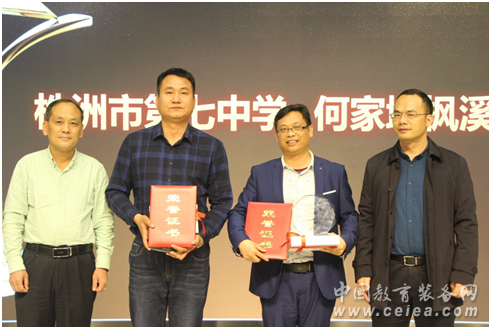 株洲市教育技術(shù)裝備所所長王強(qiáng)、蘆淞區(qū)教育局局長朱金輝為優(yōu)秀組織單位進(jìn)行了頒獎(jiǎng)。