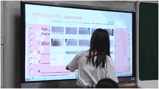 學(xué)生平板拍照分享到大屏,多位同學(xué)展示學(xué)習成果(支持四分屏)。