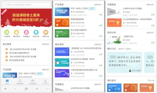 隨著加入希沃學(xué)院的老師越來(lái)越多,老師們對(duì)成長(zhǎng)的要求越來(lái)越高,希沃學(xué)院也在一步步成長(zhǎng)著。從一開始的希沃軟硬件培訓(xùn)課程、信息技術(shù)方面的課程,到圍繞教師成長(zhǎng)的信息化深度融合教學(xué)法、教學(xué)案例、教學(xué)理念、專家精品課、特訓(xùn)營(yíng)等方面的課程,再到全國(guó)性一線教師的交流平臺(tái),希沃名師杯、希沃杏壇計(jì)劃、教育先行者巡回研討會(huì)等教師展示和成長(zhǎng)的項(xiàng)目,希沃學(xué)院為老師們提供了豐富的線上線下學(xué)習(xí)和成長(zhǎng)的機(jī)會(huì)。