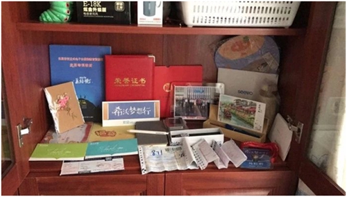 而這樣的故事還有很多,比如希沃學(xué)院云南的一位天使用戶馬老師,甚至把希沃學(xué)院歷來(lái)發(fā)給他的證書、獎(jiǎng)品、禮物甚至每張快遞單都一一珍藏起來(lái),專門陳列在家里的一個(gè)柜子里。