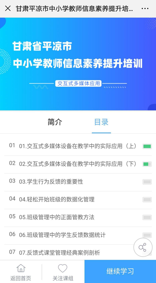 7月1日-7日,7個區(qū)縣的線上培訓相繼啟動。針對此次培訓,希沃團隊特開設“甘肅省平涼市中小學教師信息素養(yǎng)提升培訓”專區(qū),精選了36節(jié)獨具針對性與實用性的信息化教學課程,確保培訓效果和培訓目標的達成。