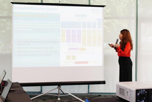 游學結業儀式,特地選擇在學術氛圍濃郁的新加坡國立大學舉行,Vivien校長現場為老師們頒發游學證書。