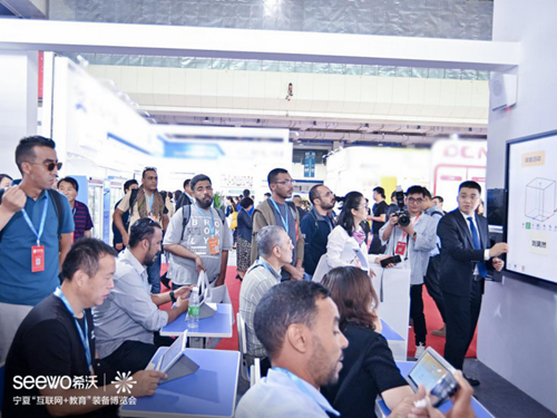 (海外友人專程到展會現場參觀體驗希沃產品)