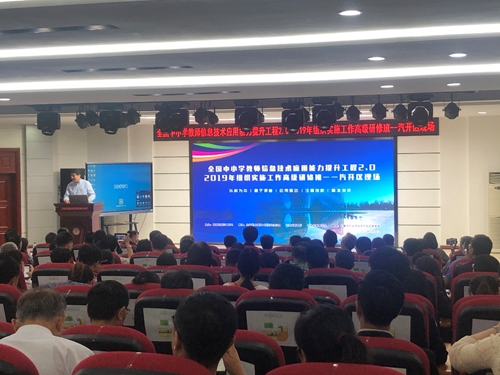 為落實《教育部關于實施全國中小學教師信息技術應用能力提升工程2.0的意見》相關要求,全國中小學教師信息技術應用能力提升工程2.0組織實施工作高級研修班現場于2019年9月26日下午兩點在長春汽車經濟技術開發區第九中學舉行。本次活動是由教育部主辦,全國能力提升執行辦公室、吉林省教育廳、吉林省教育學院承辦,長春汽車經濟技術開發區教育局協辦,來自全國各省市的300余名教師參加了本次活動。長春市教育局副局長張茂金、崔國濤,長春市教育局師培處處長張希昌,汽開區管委會副主任丁文濤出席了會議。