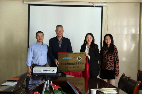 在希沃公司代表和學(xué)校代表的共同見證下,雙方進(jìn)行了簽約并共同揭牌。