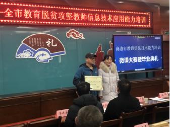 培訓結束后,希沃為老師們舉行了隆重的畢業典禮,商洛市教育局及電教館領導在百忙之中抽空來參加典禮,并為順利畢業的老師頒發結業證書及獎品。