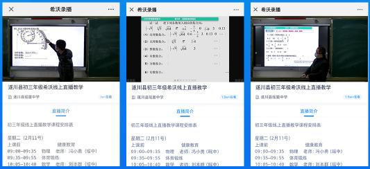 “希沃錄播云資源管理平臺(tái)”,實(shí)行初三年級(jí)課程直播,搭建線上教學(xué)平臺(tái),免費(fèi)為全縣初三學(xué)生在春季學(xué)期延期開學(xué)期間提供線上遠(yuǎn)程輔導(dǎo)答疑服務(wù),做到防疫期間的宣傳教育及心里輔導(dǎo)。