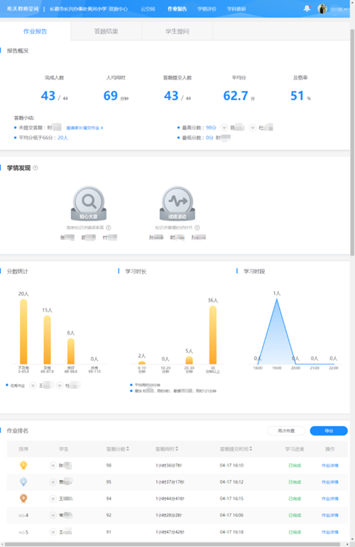 4.試卷分析詳細直觀:老師可以很清楚地了解哪些題目正確率較低,哪些學生近期在家學習效率較低等。