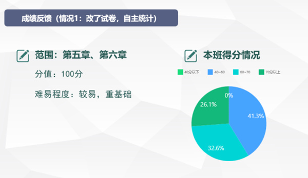 1成績反饋老師在課上先分析整體成績情況,或使用易課堂收集數據功能快速收集學生的成績及錯題情況,讓學生快速了解自己在班級、學校里的分數、排名是處于什么位置,對自己有更清晰的認知。