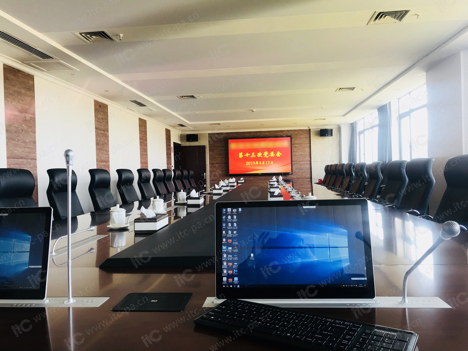 為了完善某經濟開發區會議室及報告廳的建設需要,itc特為某經濟開發區會議室及報告廳建設了一套集無紙化會議系統、會議擴聲等系統的整體解決方案。