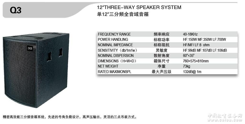 產品詳細介紹精密高效能三分頻音箱系統,先進的號角負載設計,高聲壓輸出,靈活的三點吊裝方式。