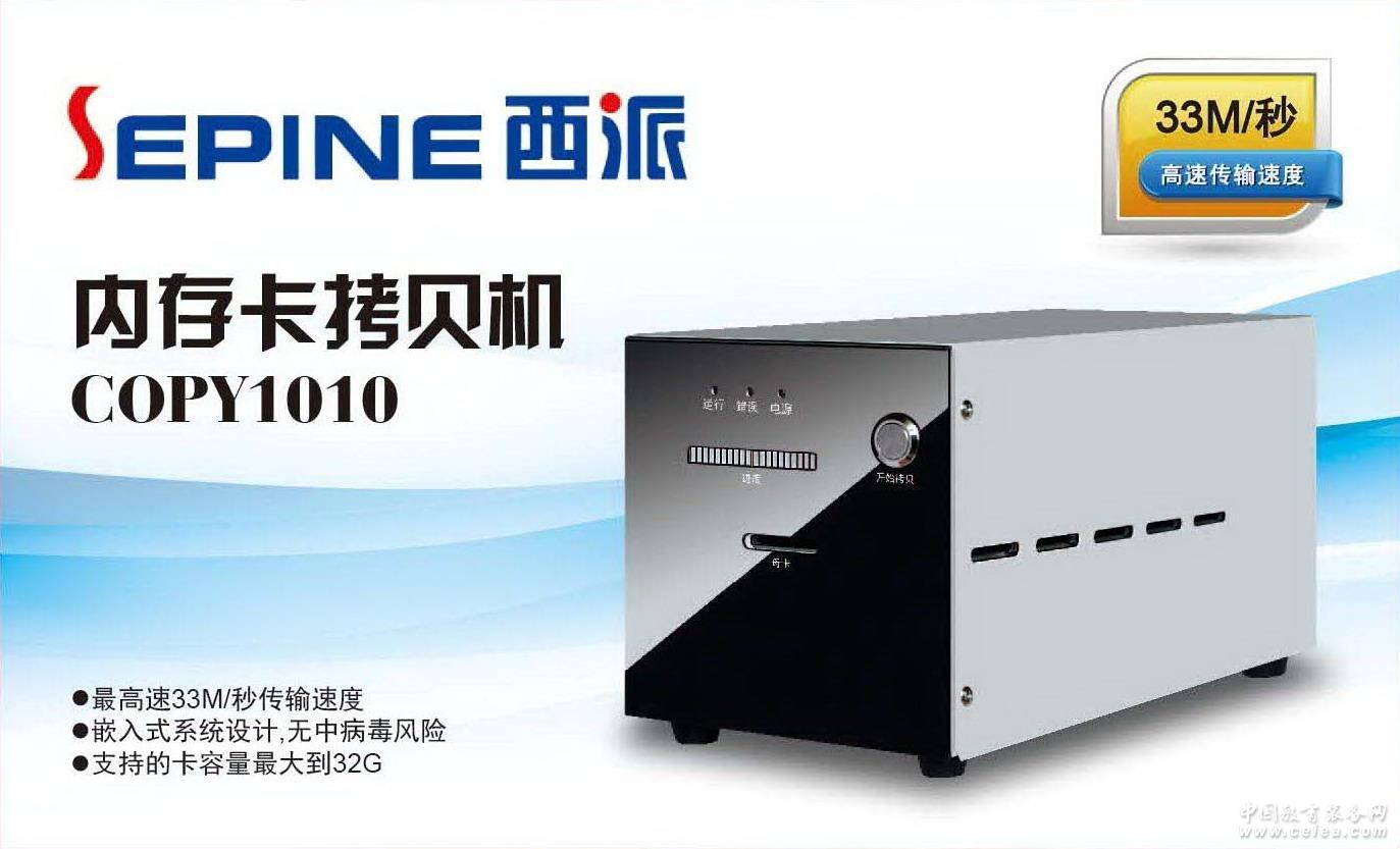 產品詳細介紹 COPY1010全速SD卡拷貝機,插入一張母卡,可以同時拷貝10張子卡,一拖十,每根數據線采用33Mbit/s,四線方式極速拷貝, 卡支持多快速度就有多快速度拷貝; .智能檢測,插幾張卡拷幾張卡; .拷貝進程動態顯示,直觀明了; .金屬輕觸按鍵,一鍵拷貝,方便快捷; .支持的卡容量:最大到32G .支持卡的協議:HD SD高速卡 .全內容拷貝,可以支持加密卡的拷貝,不管是Linux還是windows文件格式,照搬不誤; .適用工廠批量負責有內容的SD卡,GPS地圖,驅動程序等實用場合;