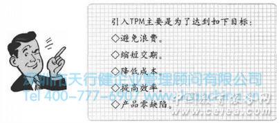 TPM管理在某些情況下甚至可以作為生產(chǎn)過程的一個完整部分。天行健管理咨詢公司認(rèn)為這樣做就是為了將意外情況和非計(jì)劃維修工作帶來的損失降到最低限度。