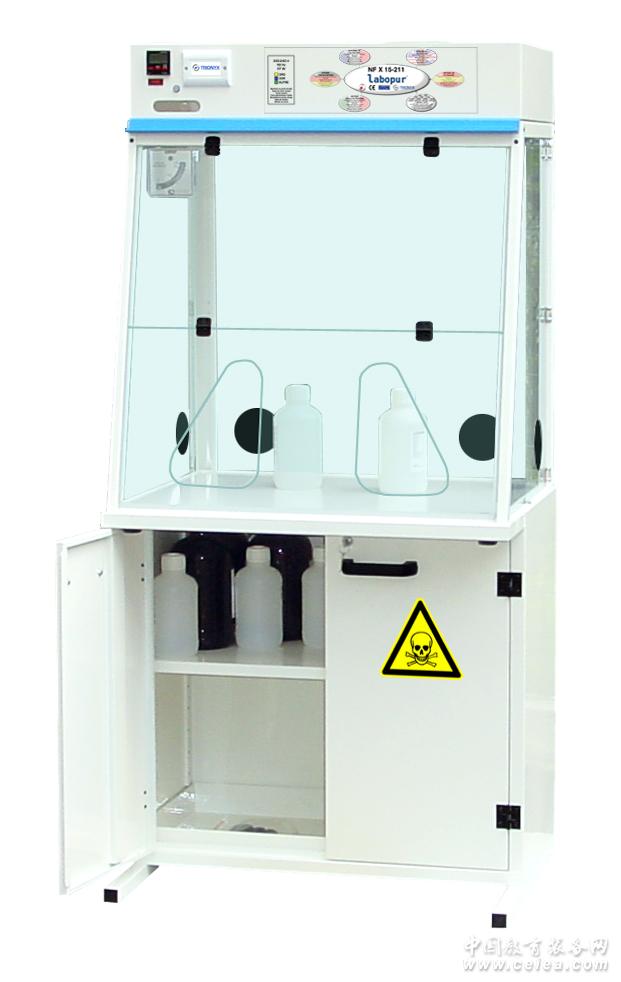 區別于傳統的通風柜,凈氣型通風柜頂部配備風機和過濾裝置,風機運轉使得柜內形成負壓,氣流從進氣口進入,過濾器將氣流中的有毒有害物質吸附去除,然后安全氣流循環排放至實驗室,為操作人員和環境提供保護,同時節省能源消耗。無需安裝復雜的外排管道系統,方便移動操作,無管道凈氣型通風柜是無需連接外排裝置的獨立凈化系統。 選擇 ECOSAFE無管道凈氣型通風柜的理由: 1.安全防護: -控制濃度和過濾效率符合AFNOR NF X 15-211.2009-CLASS 2國際標準. -一體式過濾器系統,有效過濾有毒有害氣體. -過濾器飽和報警器. -提供操作人員和實驗室環境雙重保護. 2.安裝簡便 -交付時柜子已組裝完整,無需安裝即可使用. -無需外接管道,可靈活移動,方便您放置于任何樓層. -無需配置空氣補償系統. 3.節能環保 -不向室外排風,節約空調能耗. -無污染氣體排放,保護環境. -消耗功率低,無大功率部件. 4.節約成本 -無管道安裝費用. -無空氣排風,補風系統安裝. -非常低的運行成本. 認證 LABOPUR 無管道凈氣型通風柜由權威獨立檢測機構認證,完全符合NF X 15-211 - 2009 標準。最嚴格規范的檢測,奠定了技術數據的準確性和完整性。保證我們的產品具有穩定可靠的質量的同時,也給與客戶最大的安心。