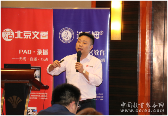 緊接著由北京文香福建區(qū)域經(jīng)理王智群針對福建省的具體情況,為各位嘉賓講解文香教育錄播解決方案-精品錄播、云錄播、互動錄播及微課方案,讓文香錄播在福建更好的落地生根。