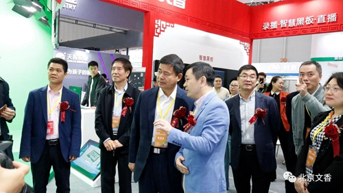 開幕式結束后,教育部關心下一代工作委員會常務副主任、中國教育裝備行業協會會長王富,廣東省教育廳副巡視員邱克楠,廣東省教育裝備中心主任彭紅光等領導來到文香展位參觀并親自體驗文香產品。展會期間,來自廣東省各市縣及周邊省市各級教育部門領導,教育信息化專家,各市縣學校負責人、用戶、代理商紛紛來到文香展位進行參觀,會場摩肩接踵,熱鬧非凡。