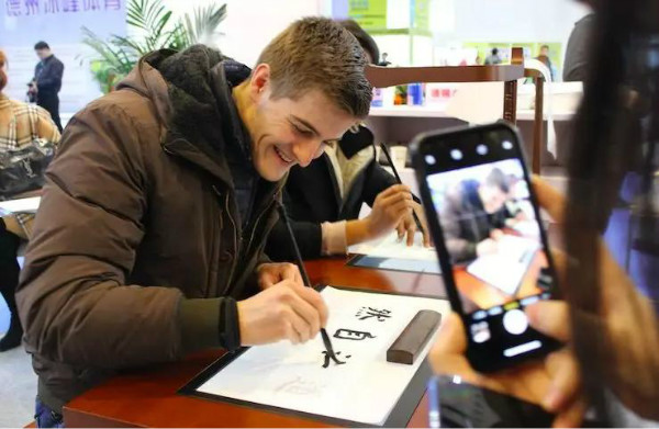 2019)在北京國家會議中心隆重開幕。華文眾合第六代智慧書法教室吸引國內(nèi)外觀眾駐足體驗。