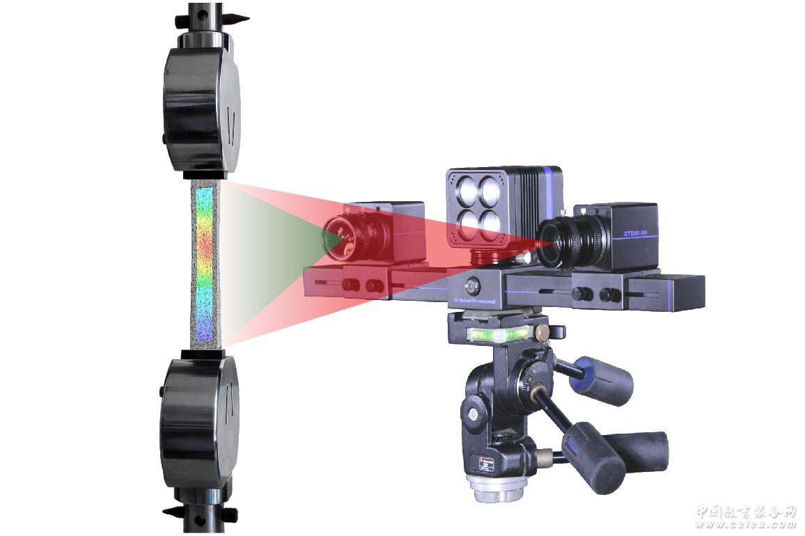 產品詳細介紹 非接觸式三維全場應變測量系統,結合數字圖像相關技術(DIC)與雙目立體視覺技術,通過追蹤物體表面的散斑圖像,實現變形過程中物體表面的三維坐標、位移及應變的測量,具有便攜,速度快,精度高,易操作等特點。 系統組成:統主要由測量頭、控制箱、標定板、標志點、計算機及檢測分析軟件等組成系統應該包含系統測量頭(含兩臺高速工業相機、進口相機鏡頭,帶萬向手柄可調節LED光源)、相機同步控制觸發控制箱、系統標定板、系統可移動支撐架、動態采集分析軟件、載荷加壓控制通訊接口、計算機系統等組成。