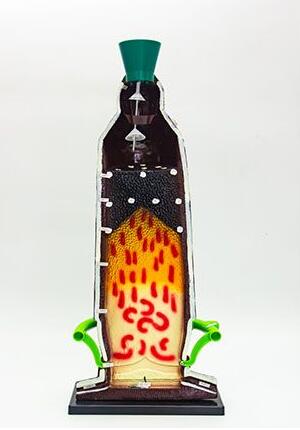 本產品適用于化學實驗演示;產品為煉鐵高爐縮小模型,裝置于底座上。