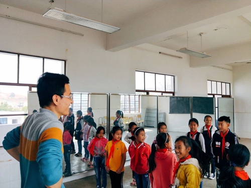 這是賀六完小的吟誦團。2018年,美麗中國支教項目老師、“美麗吟誦”團隊的蔡學鑫來到這里,和隊友們在當?shù)匾魳防蠋煹膸椭拢毯⒆觽儑L試“用吟誦的方法學古詩”,把古板的死記硬背悄然轉(zhuǎn)化為入情入境、有聲有色的吟誦。