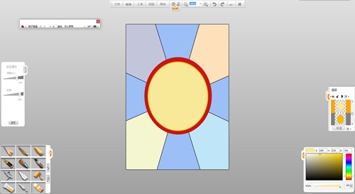 8.在新建的透明圖層中使用工具菜單下的橢圓工具繪制一個紅色的橢圓。