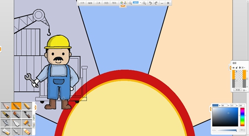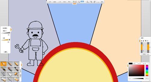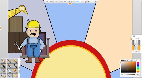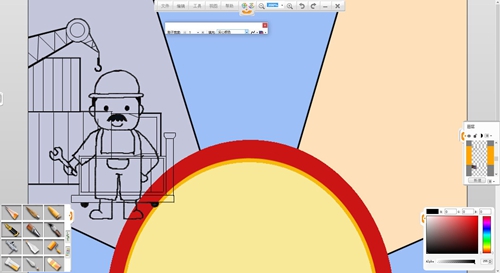 11.使用鉛筆工具開始繪制人物線稿。先在左上方區域繪制一個工人形象。