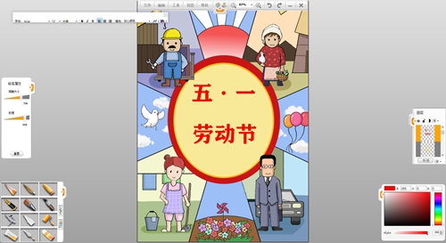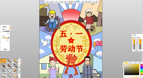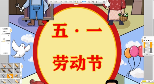 25.建立新圖層,使用工具菜單下的文本工具輸入“五·一勞動節”文字,并調節成紅色,字體和文字大小可適當調整。