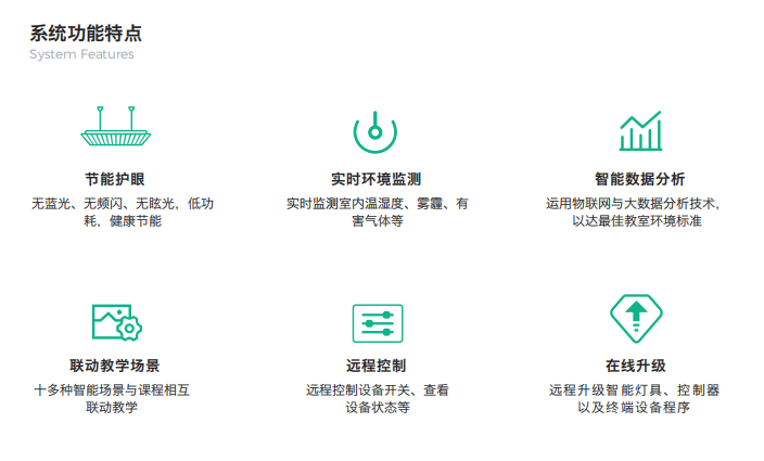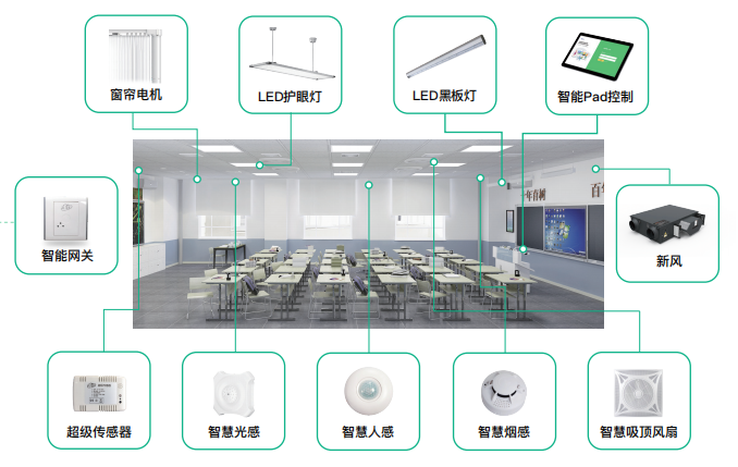 該系統(tǒng)從學生身心健康及人體舒適度需求出發(fā),充分解決了目前學校教室的幾大問題: