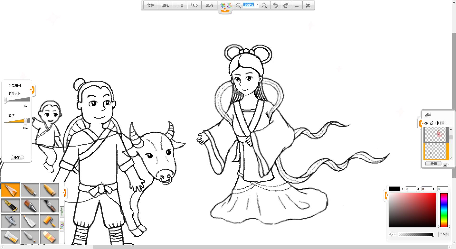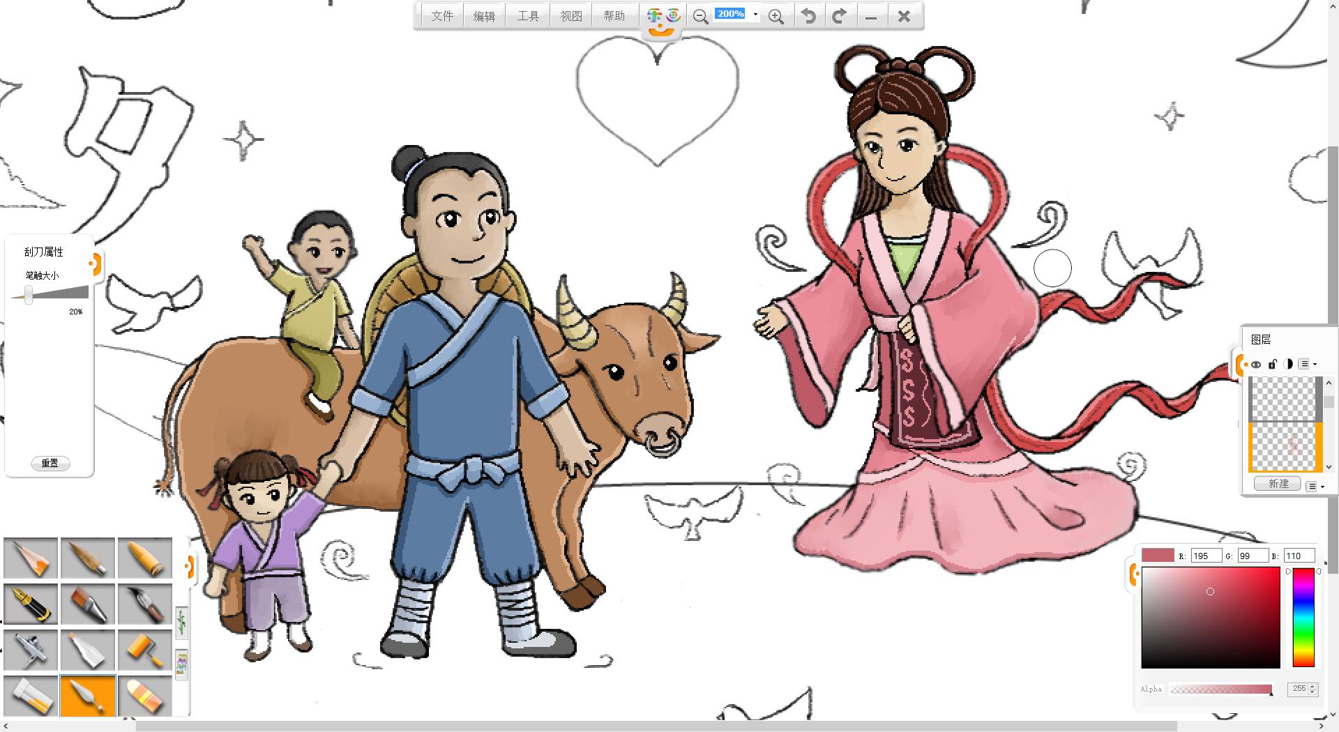 6.使用相同方法在畫面右側繪制一個織女的形象。