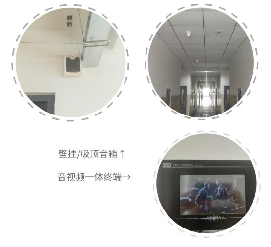 在行政樓、教學樓、圖書館、宿舍樓布署設計每一層安裝的壁掛音箱、吸頂音箱,采用全分頻設計,聲音輻射角度大,音質清晰、延時小,除日常接收校園廣播外,可互不干擾接收多音源廣播。而配置的音視頻一體終端,便于學校發布文字信息和視頻文件通過此終端更直觀的播放顯示出來,同時,還可將服務器里的文字視頻內容通過連接LED屏播放顯示。