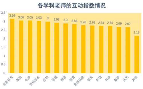 從學段進行分析,小初高三個階段的互動指數依次是2.45、2.73、2.83,高中階段的互動指數最高,即互動形式最豐富。
