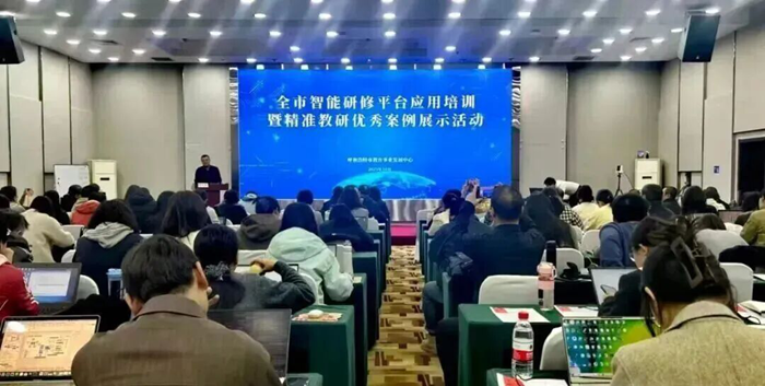 ▲ 呼和浩特市“全市智能研修平臺應(yīng)用培訓(xùn)暨精準(zhǔn)教研優(yōu)秀案例展示活動”