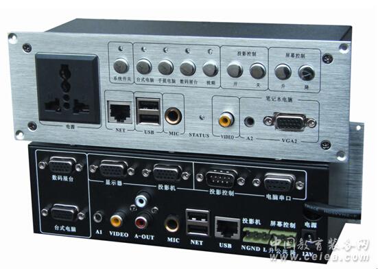 產品詳細介紹1.采用主流的SMT貼片技術,系統經過嚴格的ERC檢驗,以保證系統的穩定性。 2.內置3X2 VGA切換模塊,1X1視頻管理,2X1音頻切換模塊, 3.寬頻段紅外仿真學習功能,可獨立編程的RS-232控制功能,同時增加了控制代碼的宏處理功能,獨立的投影機管理功能,內有系統電源的管理及電動幕的控制功能。 4.配備萬能電源座、VGA、立體聲座、USB、NET等接口,采用鋁拉絲高檔面板,不銹鋼按鍵。 5.配備系統控制軟件,是控制面板的功能的補充,它不僅作控制應用軟件使用,也可作系統調試來用。 該軟件安裝方便,可適應WIN98—WIN 7等不同操作系統。 6.教學電子產品的綜合控制,支持臺式電腦,手提電腦,數碼展臺,視頻,投影機,電動幕等的控制。 2.3X2 VGA ,帶寬400MHz,+_3db,自帶長線驅動器。1X1 VIDEO,阻抗75Ω,帶寬100MHz , 2X1 AUDIO,頻響20Hz~20kHz +1/-3dB 7.獨立外置電源供電。內置投影機保護模塊,投影機延時關機,使投影機更好的散熱。 8.全新的數據保存功能:用戶所學232代碼都可以輕易的保存為計算機文件形式,可以形成代碼庫,需要時可以從電腦上直接下載到主機,完成系統的備份和快速恢復。 9.代碼內置,有撥碼開關,可通過撥碼設置投影機代碼,無需電腦軟件 10.開孔尺寸190*60mm |