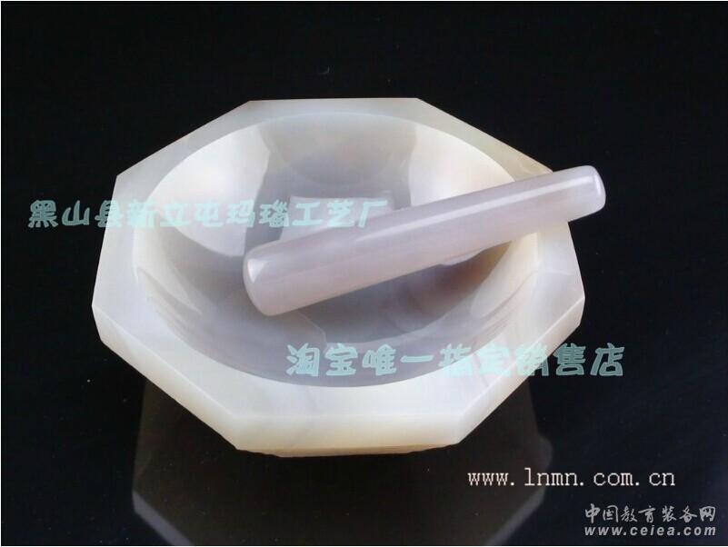 產品詳細介紹瑪瑙研缽 英文名稱:agate mortar 特點: 1,產品無裂痕、無雜質、抗耐磨性強。 2,產品光澤度優質、抗腐蝕性強,可在酸性研磨材料中使用。 3,選用進口原料加工制成,具有高純量。 用途: 用于研磨固體物質或進行粉末狀固體的混和研磨。 使用注意事項: ①在使用過程中應特別小心,不能研磨硬度過大的物質,不能與氫氟酸接觸。 ②進行研磨操作時,研缽應放在不易滑動的物體上,研杵應保持垂直。大塊的固體只能壓碎,不能用研杵 搗碎,否則會損壞研缽、研杵或將固體濺出。易爆物質只能輕輕壓碎,不能研磨。研磨對皮膚有腐蝕性的 物質時,應在研缽上蓋上厚紙片或塑料片,然后在其中央開孔,插入研杵后再行研磨,研缽中盛放固體的 量不得超過其容積的1/3。 ③研缽不能進行加熱,切勿放入電烘箱中干燥。④洗滌研缽時,應先用水沖洗,耐酸腐蝕的研缽可用稀鹽酸 洗滌。研缽上附著難洗滌的物質時,可向其中放入少量食鹽,研磨后再進行洗滌。
