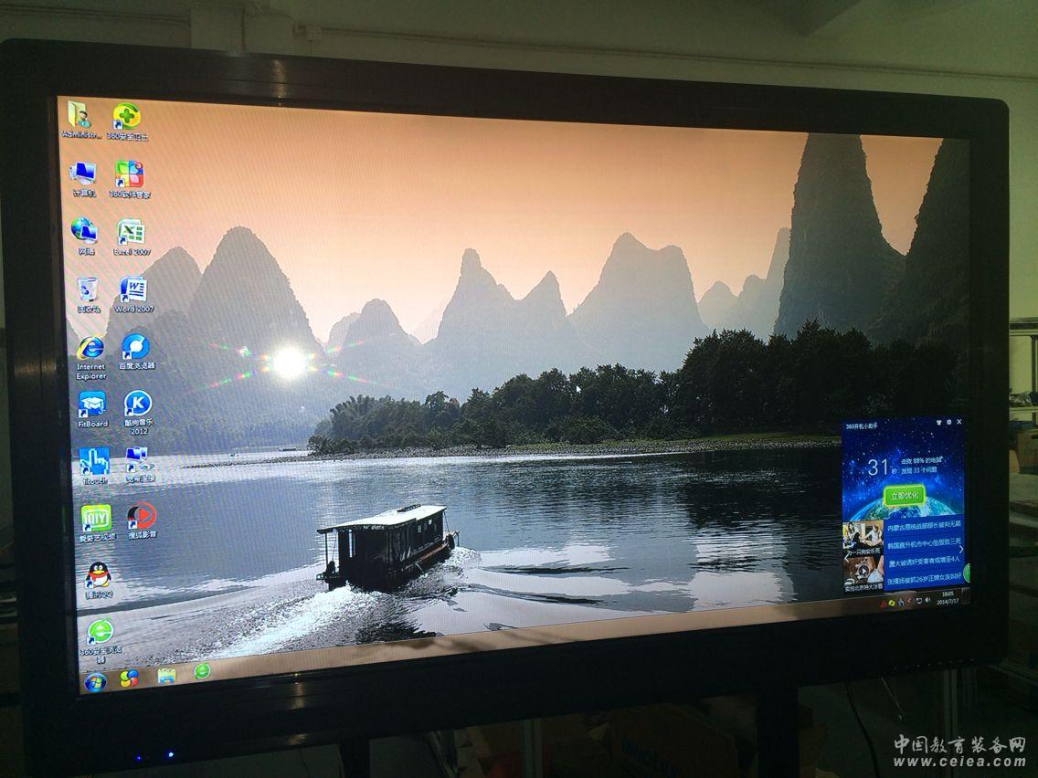 55寸液晶觸摸一體機是在觸摸屏,電腦主機,包邊外殼里面集成了顯示液晶屏,同時結合先進的多媒體制作工具,電子書寫板軟件,多媒體互動軟件,文字,圖像,動畫、高清晰視頻,音頻,電子文件,Internet信息等功能。