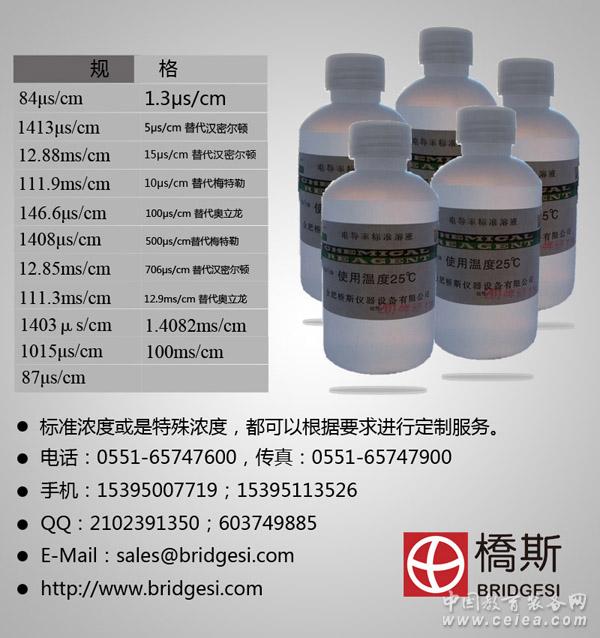 產品詳細介紹橋斯電導率標準溶液100us 706us電導率標定液1015us 12.9ms廠家