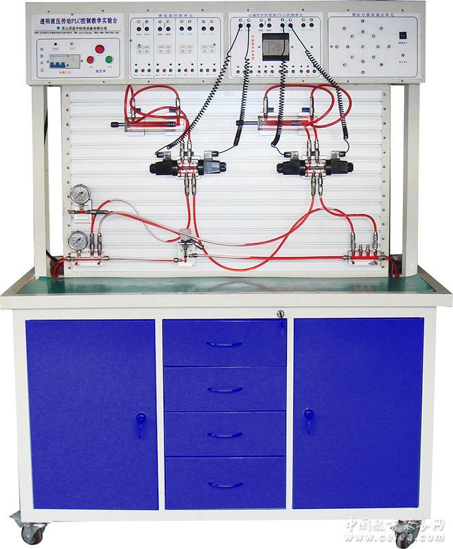 產品詳細介紹SL-TP01 PLC控制透明液壓教學實驗臺是液壓教學課程中,為了更直觀形象的認知各種液壓元件的內部結構、清晰明了地觀察液壓傳動油路的工作過程而專業設計的透明液壓實驗臺;實驗臺所有液壓元件均采用進口透明有機玻璃外殼,每個透明液壓元件均按照工業液壓元件的實際內部結構而設計,內部均采用數控加工和表面精磨處理,加工精度0.5絲以上,真實的反映了工業液壓元件的構造原理及其工作原理。教學中可利用該透明特點對單個液壓元件的結構、工作原理及性能進行教學講解。也可以組成任意基本回路觀察閥芯在回路中的動作情況和流體在閥體中的流向,滿足不同液壓實驗和不同學生的課程教學,實驗臺還配有PLC編程學習控制系統,可以實現自動化液壓控制實驗教學。 一、實驗臺的基本概況 1、實驗工作臺為鋼制表面靜電噴塑而成,各液壓元件為模塊式結構,電氣控制部分為模塊式結構。設備升級方便,可擴展性強。另外實驗桌還帶有4個萬向輪及固定機構,方便移動布局。 2、液壓元件:按標準實物結構制作,工作狀況與實物閥完全一致。閥體材料選用進口有機玻璃,該材料透光率93% 耐溫:-30+70度 ,優良的耐熱性,力學強度好,耐侯性、耐化學藥品性能好;經工業加工處理,元件內部結構清楚;閥芯采用工業流程加工,其整體裝配精度高,內泄量少;換向電磁鐵與工業實際電磁換向閥一致;管路采用透明耐壓塑料管,帶自動快速接頭,能夠方便操作,接頭壓降小,具有良好的密封性能,液壓系統在工作中壓力不大于0.8Mpa的條件下,液壓元件無漏油現象,系統工作清晰直觀;各液壓元件均配有過渡底板,可方便、隨意地將元件安放在實驗面板上,搭接實驗回路方便。 3、安全保護措施:帶電流型漏電保護裝置,對地漏電電流超過30mA即切斷電源;電氣控制采用直流24V電源,并帶有過壓保護、過流保護,防止誤操作損壞設備;設有缺相及相序保護,避免液壓泵站機泵組因工作電源不正常而引起的損壞。實驗導線采用全封閉設計,學生無法接觸金屬導體,確保人身安全。 4、油箱:配置油溫液位計(指示系統油溫及液壓油液位)、過濾器、空氣濾清器等。 二、實驗臺主要特點: 1、 采用透明有機玻璃外殼,可以觀察到液壓傳動裝置的內部構造和工作流程。 2、 防漏快插結構使得實驗回路的組裝簡便、快捷,清潔、干凈。紅色的液壓油和銀白色底版使得元件的內部結構鮮明直觀。 3、 通過透明的油管和液壓油中的氣泡可以清晰的觀察到液壓油沖液壓泵到油箱的整個流動過程。 4、 獨立的元件模塊,方便的安裝方式,可以隨意的組合各實驗模塊,搭建各種不同的實驗回路。 5、 液壓元件的最大承受壓力為1Mpa,,額定工作壓力為0.8Mpa,是安全的低壓實驗系統。 6、 采用PLC編程控制模塊,實現可編程程序控制器(PLC)智能控制。使得機、電、液控制有機結合起來,優化控制方案。 三、實驗臺組成: 實驗臺由實驗臺架、液壓泵站、常用液壓元件、電氣控制單元等幾部分組成 1. 實驗臺架 實驗工作臺采用優質冷軋鋼板為主框架,表面靜電噴塑,整體牢固可靠、美觀大方,實訓面板帶“T”型溝槽形式的鋁合金型材結構,可以方便隨意地安裝液壓元件,搭接各種實驗回路。 2. 液壓泵站: 油泵:靜音葉片泵 ,公稱排量8.3mL,壓力:0-2.5Mpa; 驅動電機:三相交流電壓,功率750W,驅動電源 :380V/50 Hz 油箱:40升