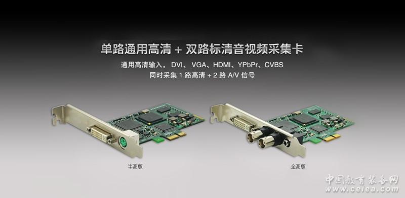 1.單卡走天下 創(chuàng)造性地將 VGA 和標(biāo)清視頻整合在一起,很多場合需要 VGA 和模擬視頻信號(hào)同時(shí)采集。教學(xué)錄播: 教師機(jī)畫面+教師視頻+學(xué)生視頻;手術(shù)直播: 醫(yī)療儀器畫面+手術(shù)實(shí)況;安全檢查: X 光檢測機(jī)+通道視頻;大屏顯示: 多種視頻信號(hào)源整合顯示。
