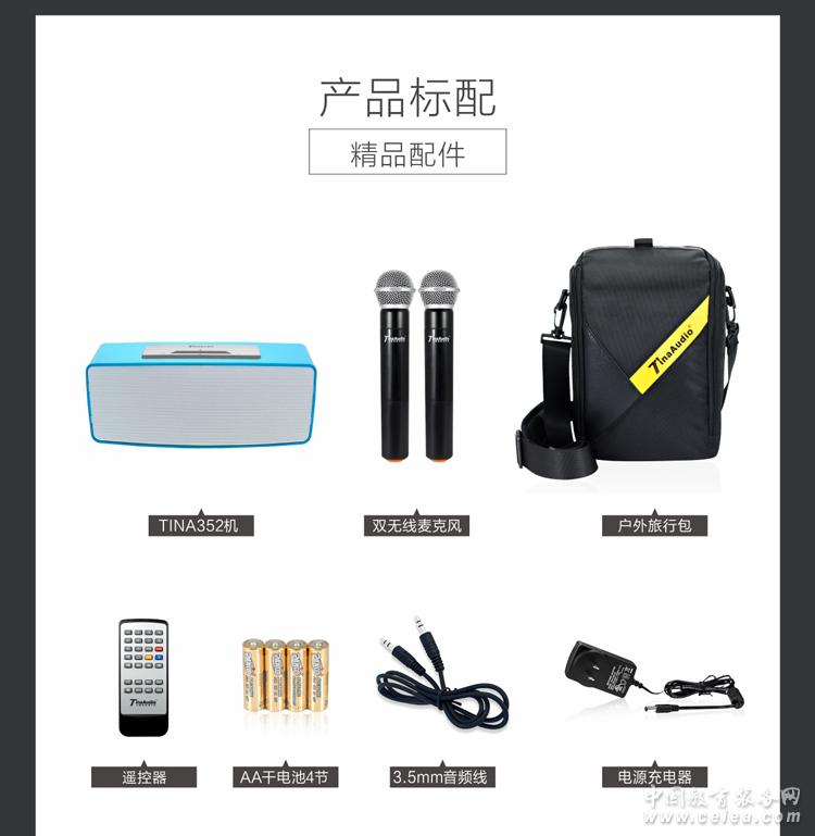 產品詳細介紹自帶藍牙播放音樂,USB,音頻輸入功能,開機打開麥克風即可用,配送戶外背包,小巧輕便