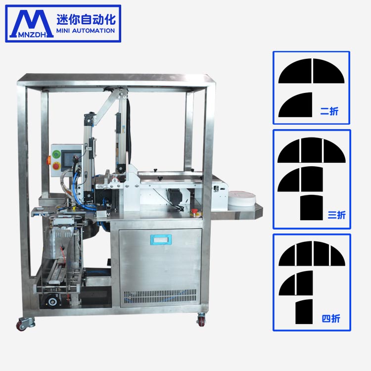 產品詳細介紹SSDZD-44產品詳情+88 取膜機 技術說明: 1,采用智能數控系統觸摸屏人機界面, 2,輸送帶輸送,人工可以方便的把膜布放在輸送帶上, 3,成品輸出口,折膜入袋后的成品從此輸出, 4,速度快,穩定性高。 產品參數: 1,動作流程,自動折膜3/4折,自動入袋,成品輸出。 2,生產效率 2800-3300袋/H。 3,面膜袋規格,寬95-160mm 長 140-220 mm. 4,電源 220V 氣壓 0.6pa 功率 0.5KW 5,設備尺寸:1500*1130*1436mm 機重 300KG 設備配置: 亞德客的氣缸 亞德客的電磁閥 臺灣力科的感應器 德國PABIA的吸盤 臺灣臺達的變頻器 步科伺服電機 技術特點: 1,PLC和觸摸屏控制系統,伺服系統,性能穩定,體積小巧,操作方便。 2,無膜,不折疊,無袋,不裝,帶空袋檢測,自動剔除。 3,可儲存20種膜布參數,一次設定,一直適用。