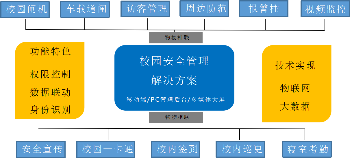 產品詳細介紹以物聯網、大數據技術為核心,通過在前端部署視頻監控設備、人臉識別布控設備、考勤閘機、車載道閘等,實現學生考勤、視頻監控、報警信息的采集,通過視頻聯網、訪客管理、考勤管理、車輛管理、宿舍考勤、一鍵報警等應用,為K12中小學校園提供全方位智慧校園安全解決方案,實現校園安全的統一管理和控制。