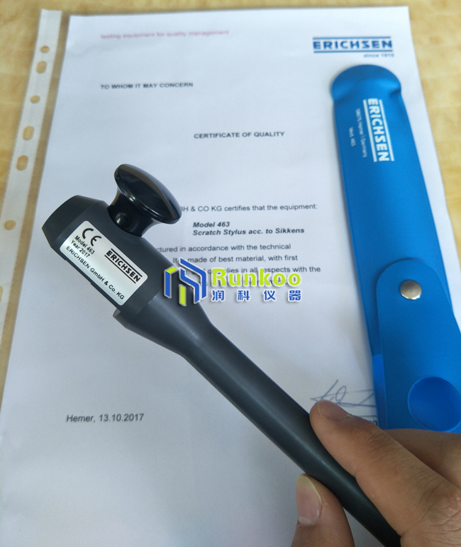 產品詳細介紹 德國ERICHSEN儀力信463型劃痕儀的設計和功能: 深圳市潤科儀器設備有限公司供應:德國EICHSEN儀立信463型劃痕儀由一個碳化物割刀組成,通過一個固定支架和把手導向。標準型中,切割刀為寬1mm的棱形長方形。使用鎖緊螺絲,提高或降低切割刀可水平調節。 亦可按客戶測試要求:選配提供0.5mm的碳化物割刀。 德國ERICHSEN儀力信463型劃痕儀的產品介紹: 德國Erichsen 儀力信463 劃痕儀用于在要進行產品表面腐蝕試驗的涂層覆蓋樣板上產生特定的損傷。腐蝕試驗可使用符合DIN 50 021標準的鹽霧測試,Erichsen #606型和#608型便可作出此測試。 該方法提供了一個涂層下方腐蝕的影響和其對附著力影響的評估標準,涂層下橫向損壞長度可作為一個防腐保護指標。 德國ERICHSEN儀力信463型劃痕儀的應用和測試原理: 德國Erichsen 儀力信463 劃痕儀用于在要進行腐蝕試驗的涂層覆蓋樣板上產生特定的損傷。腐蝕試驗可使用符合DIN 50 021標準的鹽霧測試,Erichsen #606型和#608型便可作出此測試。 該方法提供了一個涂層下方腐蝕的影響和其對附著力影響的評估標準,涂層下橫向損壞長度可作為一個防腐保護指標。 執行測試 準備測試樣板,在整塊金屬板上劃一根或多根直劃痕,使它們平行于樣板的窄邊并劃穿至基材。在某些場合可使用St Andrews Cross劃痕法。 德國ERICHSEN儀力信463型劃痕儀的訂貨信息: 訂貨號產品名稱: 0100.01.31463 型劃痕儀 標配:帶1個1mm的碳化物割刀 選配:根據要求0.5mm的碳化物割刀 |