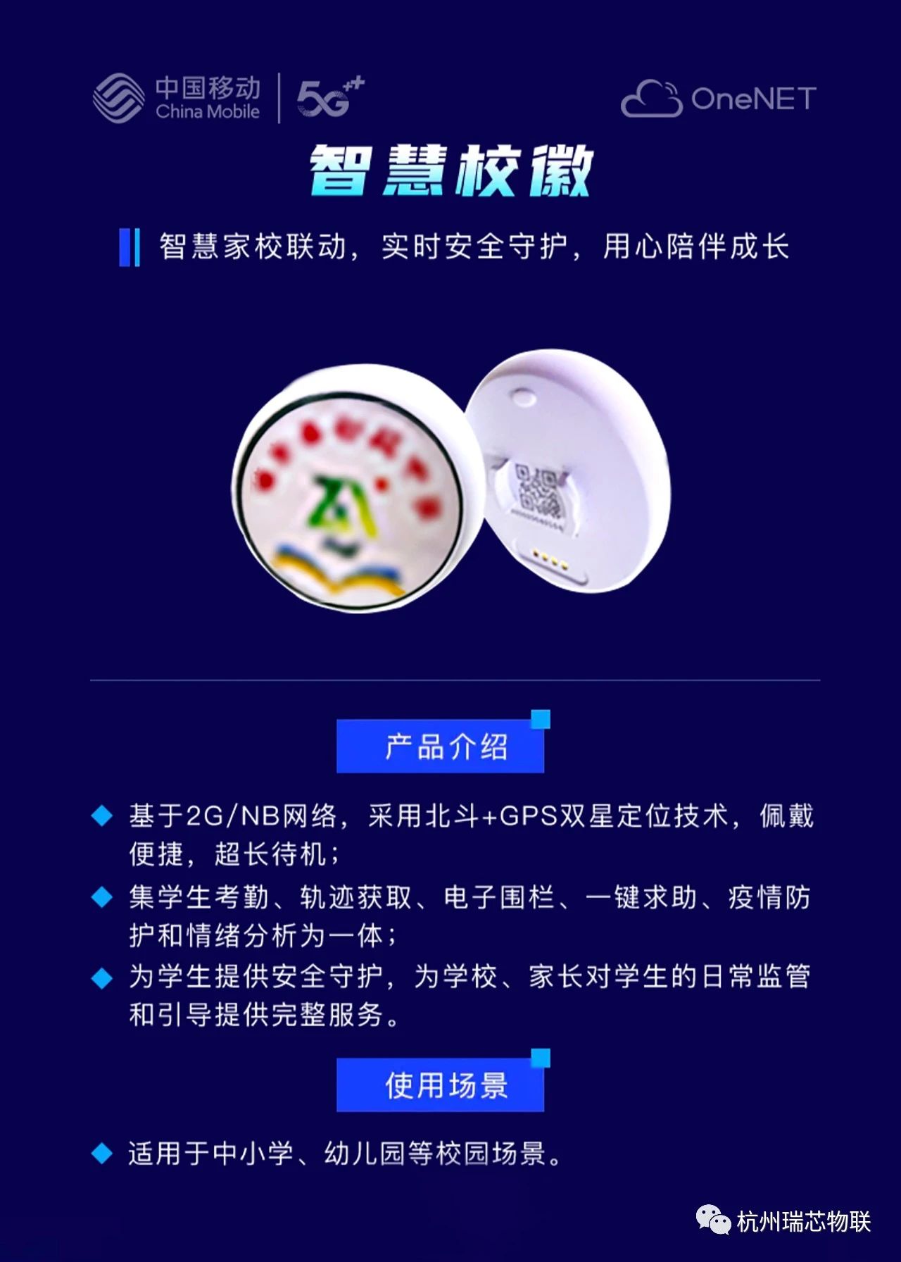 2、精準定位 我們的智能校徽采用北斗和GPS雙星定位,保證佩戴校徽時定位的精準度,家長能夠實時知道校徽佩戴者所在的位置,并也能準確地界定校方和家長在安全管理方面的責任。