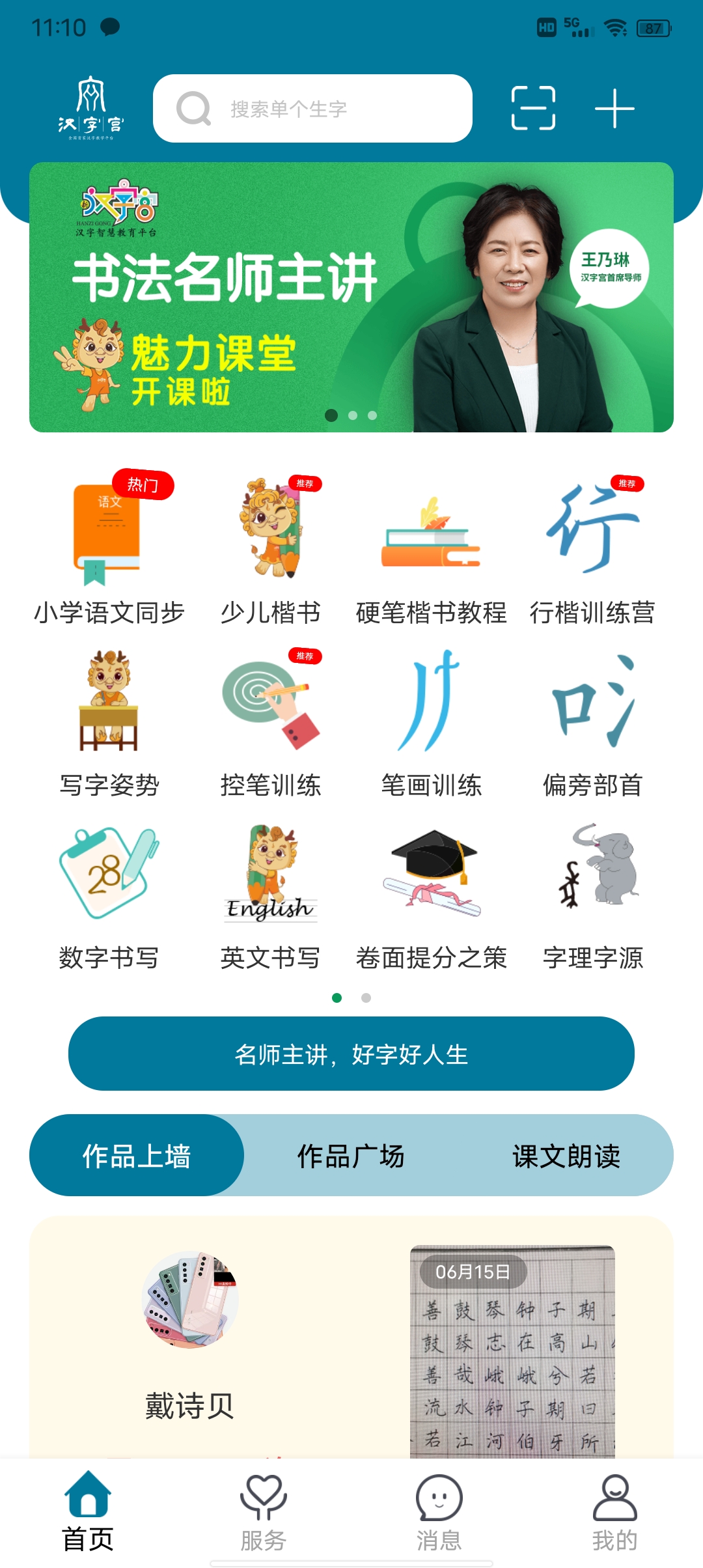七、硬筆楷書教程:以筆畫形式進行一一編排;每一課設有硬筆教學課例;包含其筆順寫法,字形結構,偏旁部首,范字書寫等教學內容;每一課例都設有相關的教學內容;課件資源已系統組合成完整的課堂,也可根據教學需要靈活選擇。