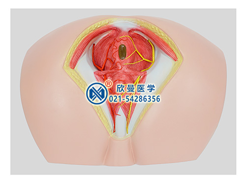 XM-714男性會陰模型顯示肛提肌、肛門外括約肌、肛尾韌帶、坐骨直腸窩、坐骨結(jié)節(jié)、肛門、會陰中心腱、球海綿體肌、坐骨海綿體肌、會陰深橫肌、會陰淺橫肌及會陰部的動脈神經(jīng)等。
