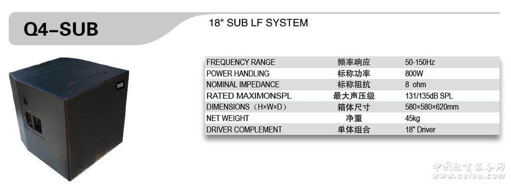 產品詳細介紹頻率響應50-150HZ,標稱功率800W,標稱阻抗8KHM,最大聲壓級131/135DB SPL,箱體尺寸580*580*620MM,凈重45KG,單體組合18寸。
