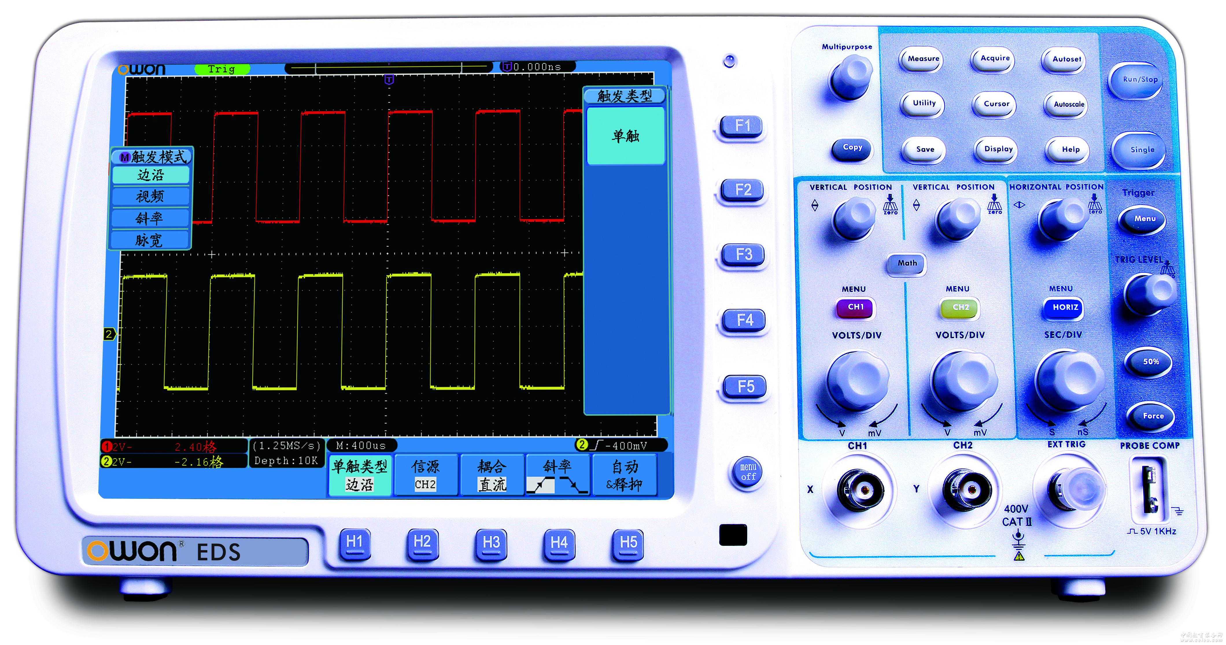 產品詳細介紹+性能參數 型號 EDS062C 帶 寬 60MHz 實時采樣率 500MS/s 上升時間 (BNC上典型的) ≤5.8ns 時基范圍 5ns/div ~ 100s/div,按1 ~ 2 ~ 5進制方式步進 存儲深度 10M 通 道 2通道 + 外部觸發 顯 示 8英寸TFT (真彩色) 液晶屏幕,65535色,800×600像素 時間間隔(△T) 測量精確度 單次:±(1采樣間隔時間+100ppm×讀數+0.6ns), >16個平均值:±(1采樣間隔時間+100ppm×讀數+0.4ns) 輸入耦合 直流、交流、接地 輸入阻抗 1MΩ±2%,與15pF±5pF并聯 垂直靈敏度 2mV/div~10V/div(在輸入BNC處) 垂直分辨率 8bit分辨率,兩個通道同時采樣 最大輸入電壓 400V (DC+AC峰值、1MΩ輸入阻抗) (10:1探頭衰減) 觸發類型 邊沿觸發、視頻觸發、交替觸發、脈寬觸發、斜率觸發 探頭衰減系數 1X, 10X, 100X, 1000X 通道間的隔離度 50Hz:100:1,10MHz:40:1 波形內插 Sin(x)/ x 位移范圍 ±1V(2mV~50mV), ±10V(100Mv~1V),±100V(2V~10V) 低頻響應 (交流耦合,-3Db) ≥5Hz (在BNC上) 直流增益精確度 ±3% 觸發耦合方式 DC耦合、AC耦合、LF抑制、HF抑制 觸發方式 自動、正常、單次 觸發電平范圍 內部 距屏幕中心±6格 EXT ±600mV EXT/5 ±3V 觸發電平精確度 (典型的) 適用于上升和下降時間≥20ns的信號 內部 ±0.3格 EXT ±(40mV+6%設定值) EXT/5 ±(200mV+6%設定值) 觸發靈敏度 (視頻觸發、典型的) 內部 2格峰間值 EXT 400mV EXT/5 2V 信號制式和行/場頻率 (視頻觸發類型) 支持任何場頻或行頻的NTSC、PAL和SECAM廣播系統 自動測量 峰-峰值、均值、均方根值、頻率、周期、最大值、最小值、頂端值、底端值、幅度、過沖、預沖、 上升時間、下降時間、正脈沖、負脈寬、正占空比、負占空比、延遲A→B 、延遲A→B 數學操作 加、減、乘、除、FFT 存儲波形 15組波形 李沙育圖形 帶寬 滿帶寬 相位差 ±3 degrees 電流測量范圍 100mA/V~1KA/V 光標測量 光標間電壓差(△V),光標間時間差(△T) PC接口 USB、支持U盤存儲、LAN、VGA / RS232 (選配) 電 源 100~240VACRMS,CATⅡ 電 池 7.4V,8000mAh 尺 寸 340mm (長)×155mm (高)×70mm (寬) 重 量 1.8公斤(主機) 以上參數如有變化不再另行通知,請以網站更新為準。 +應 用 電子線路檢測 電路功能測試 設計與制造測試 教育和技術培訓 汽車維修檢測 +主要配件 圖片僅供參考,請以實物為準 電源線 驅動光盤 產品說明書 USB數據線 探筆 校正筆 電池(選配) 包(選配) |