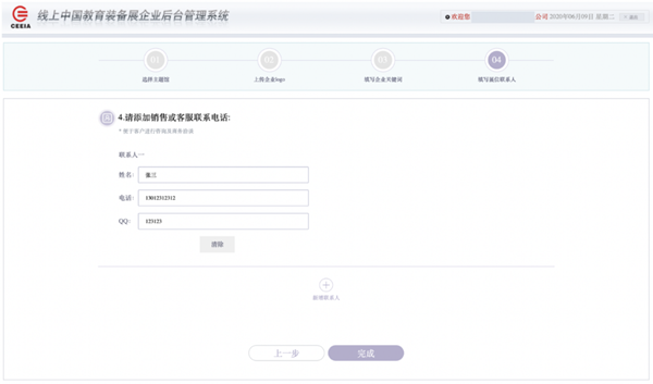 4.填報聯系人信息可新建聯系人,最多可填報3位聯系人的信息。